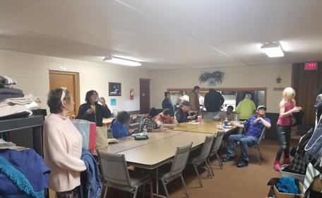 People receiving a hot meal. Hagen Center serves a free meal to those in need every Sunday and Tuesday.